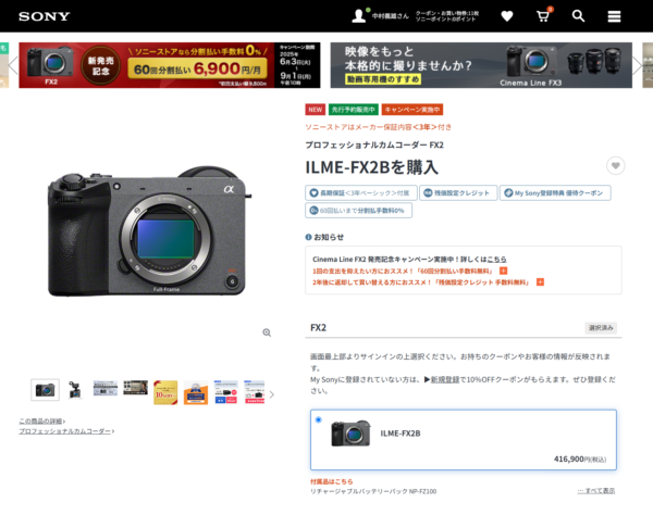 プロフェッショナルカムコーダー 『FX2(ILME-FX2B)』 のソニーストア販売価格は、以下の特典やキャンペーンを活用することで、大変お得に購入できます。